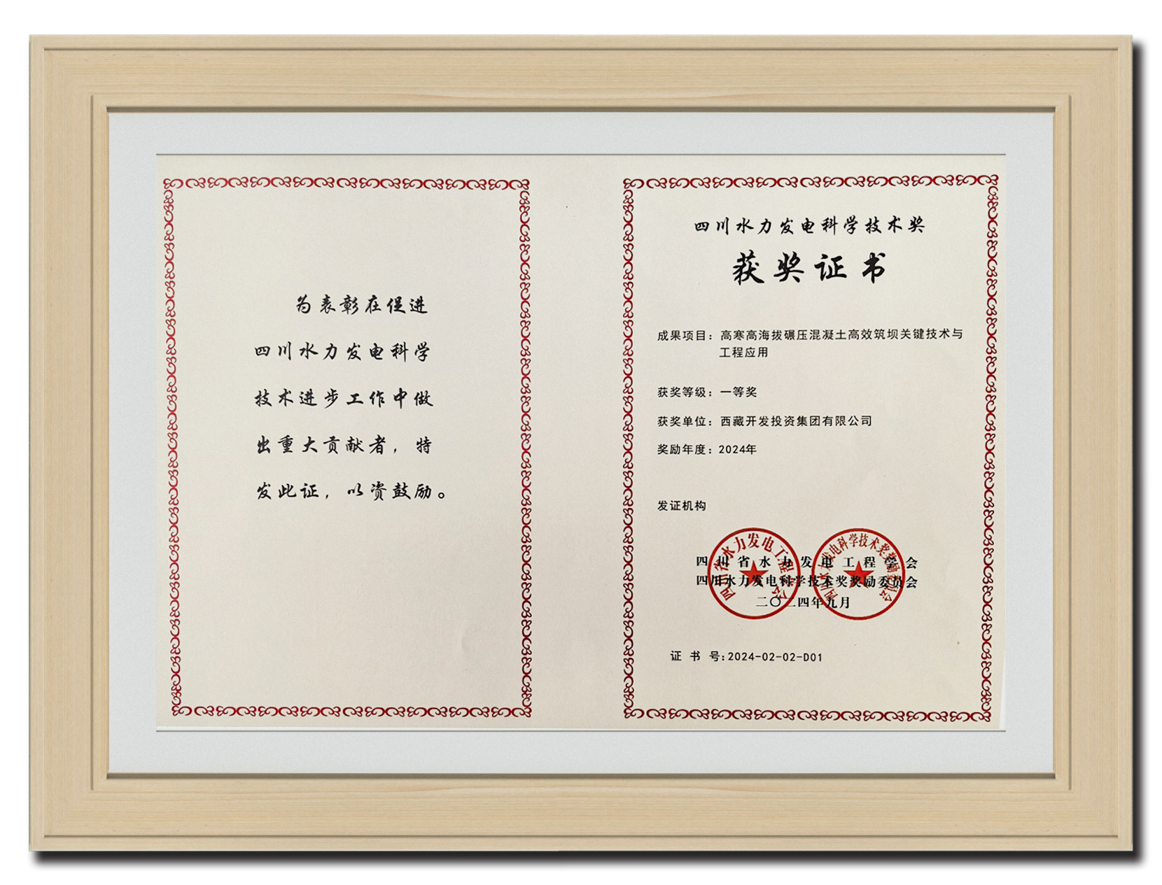 2024年9月 果多水電站“高寒高海拔碾壓混凝土高效筑壩關(guān)鍵技術(shù)與工程應(yīng)用”榮獲四川水力發(fā)電科學(xué)技術(shù)一等獎(jiǎng)