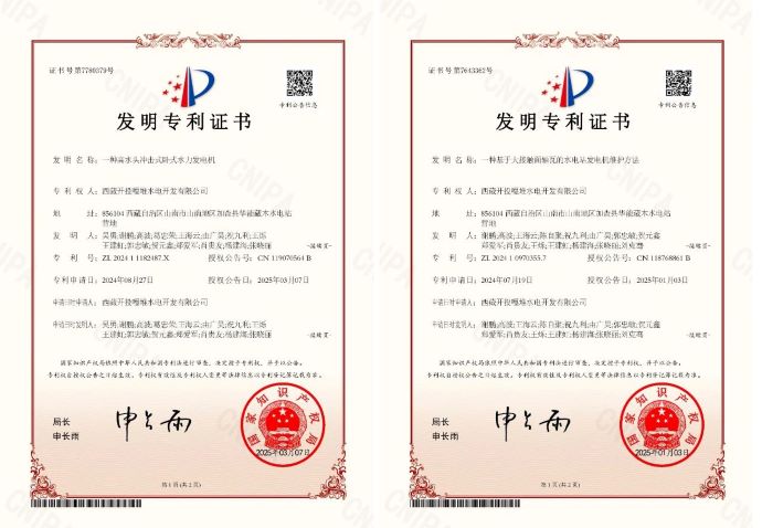 近日,西藏開投嘎堆水電公司在科技創(chuàng)新方面取得重大突破,連獲《一種基于大接觸面軸瓦的水電站發(fā)電機維護方法》《一種高水頭沖擊式臥式水力發(fā)電機》兩項發(fā)明專利。