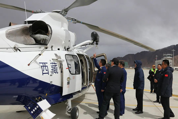 祁騰武指出,西藏各類自然災(zāi)害多發(fā)頻發(fā),消防應(yīng)急救援任務(wù)繁重,要堅(jiān)決貫徹落實(shí)黨中央和區(qū)黨委政府關(guān)于消防救援和通航產(chǎn)業(yè)發(fā)展的決策部署,堅(jiān)持人民至上、生命至上,聚焦穩(wěn)定、發(fā)展、生態(tài)、強(qiáng)邊“四件大事”,提高政治站位,立足職能定位,全力服務(wù)保障我區(qū)全任務(wù)、全地域、全要素應(yīng)急救援任務(wù)開展。一是要確保安全。消防應(yīng)急救援的專業(yè)性很強(qiáng)、危險(xiǎn)系數(shù)也很高,要樹牢安全發(fā)展理念,增強(qiáng)紅線意識(shí),堅(jiān)持底線思維,落實(shí)好安全生產(chǎn)責(zé)任制,強(qiáng)化設(shè)備安全性能測試,常態(tài)化開展融合訓(xùn)練,確保救援裝備安全運(yùn)行。二是要深化合作。要立足航空消防救援方向,加強(qiáng)與自治區(qū)消防救援總隊(duì)、設(shè)備生產(chǎn)制造企業(yè)、科研機(jī)構(gòu)的深度合作,統(tǒng)籌資源力量,創(chuàng)新工作模式,做好經(jīng)驗(yàn)總結(jié)推廣,力爭把不斷涌現(xiàn)的應(yīng)急救援新技術(shù)、新裝備運(yùn)用到全區(qū)應(yīng)急救援各領(lǐng)域。三是要加快落地。AC312E消防救援型直升機(jī)的引進(jìn)使用,區(qū)黨委政府高度關(guān)注,各族群眾翹首以盼,合作各方要積極對(duì)接、共同努力,科學(xué)謀劃預(yù)算編報(bào)、需求論證、裝備采購、國家航空器報(bào)備各項(xiàng)工作,確保盡早交付運(yùn)行、盡早發(fā)揮效能,切實(shí)為維護(hù)全區(qū)各族人民群眾生命財(cái)產(chǎn)安全和經(jīng)濟(jì)社會(huì)高質(zhì)量發(fā)展保駕護(hù)航。