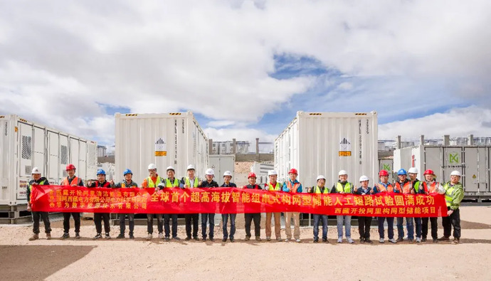 2024年10月31日,由西藏開投集團(tuán)投資、中國電建昆明院-電建建筑公司聯(lián)合體項(xiàng)目部承建的全球首個(gè)超高海拔、超低溫度、極弱電網(wǎng)智能組串式構(gòu)網(wǎng)型光儲(chǔ)電站——西藏開投阿里地區(qū)改則縣30MW(配儲(chǔ)能)光伏發(fā)電項(xiàng)目成功并網(wǎng)發(fā)電,標(biāo)志著新能源技術(shù)在高原地區(qū)的重大突破,可減少化石資源的消耗、有害氣體對(duì)環(huán)境的污染,有力促進(jìn)當(dāng)?shù)亟?jīng)濟(jì)社會(huì)發(fā)展,改善居民生活條件。項(xiàng)目于2024年12月25日獲評(píng)2024年度“光能杯”中國儲(chǔ)能產(chǎn)業(yè)優(yōu)秀電網(wǎng)側(cè)儲(chǔ)能示范項(xiàng)目。