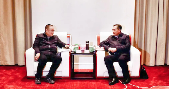 3月6日下午,市委書記張海波與西藏開投集團黨委書記、董事長祁騰武一行座談。