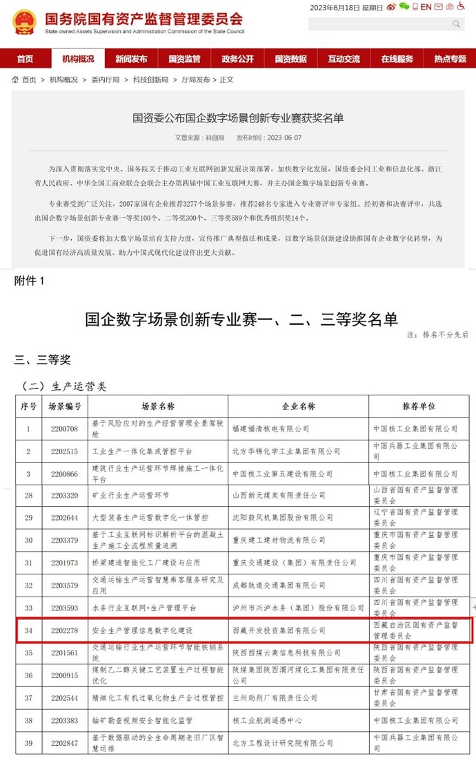 近日,集團(tuán)公司安全生產(chǎn)管理平臺(tái)在國(guó)務(wù)院國(guó)資委首屆國(guó)企數(shù)字場(chǎng)景創(chuàng)新專業(yè)賽中榮獲三等獎(jiǎng)。