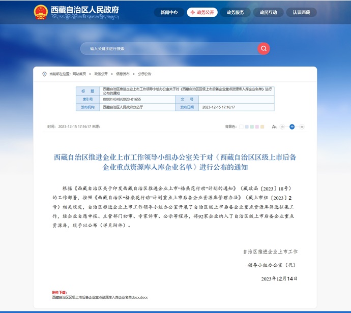 為積極響應(yīng)自治區(qū)人民政府《西藏自治區(qū)推進(jìn)企業(yè)上市“格?;ㄐ袆?dòng)”計(jì)劃》等文件精神,經(jīng)過自愿申報(bào)、主管部門初審、專家評(píng)審和公示等程序,近日,西藏自治區(qū)推進(jìn)企業(yè)上市工作領(lǐng)導(dǎo)小組辦公室公布了全區(qū)上市后備企業(yè)資源庫名單。西藏開發(fā)投資集團(tuán)有限公司和西藏開投果多水電有限公司兩家企業(yè)成功入選西藏自治區(qū)“格桑花行動(dòng)”計(jì)劃重點(diǎn)上市后備企業(yè)資源庫。