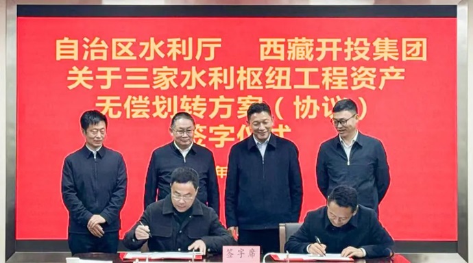 12月11日,自治區(qū)水利廳與西藏開投集團(tuán)在拉薩簽署旁多、滿拉、拉洛三大水利樞紐工程資產(chǎn)無償劃轉(zhuǎn)協(xié)議,標(biāo)志著西藏國有企業(yè)改革邁出堅(jiān)實(shí)步伐。自治區(qū)水利廳黨組副書記、廳長和忠華,區(qū)政府國資委黨委委員、副主任于雷,西藏開投集團(tuán)黨委書記、董事長祁騰武出席簽字儀式并講話。自治區(qū)水利廳黨組成員、副廳長趙輝與西藏開投集團(tuán)黨委委員、副總經(jīng)理尼瑪代表雙方簽署協(xié)議。集團(tuán)領(lǐng)導(dǎo)羅布次仁、陳焱罡出席儀式。