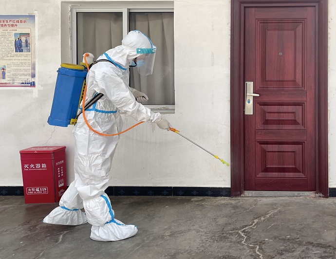 (生活區(qū)域消毒 李國(guó)海攝)