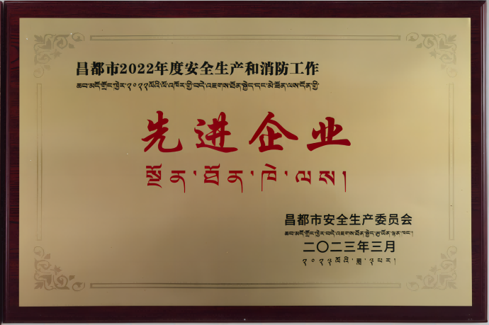 近日,昌都市安全生產(chǎn)委員會授予果多水電公司昌都市2022年度安全生產(chǎn)和消防工作先進企業(yè)榮譽稱號。
