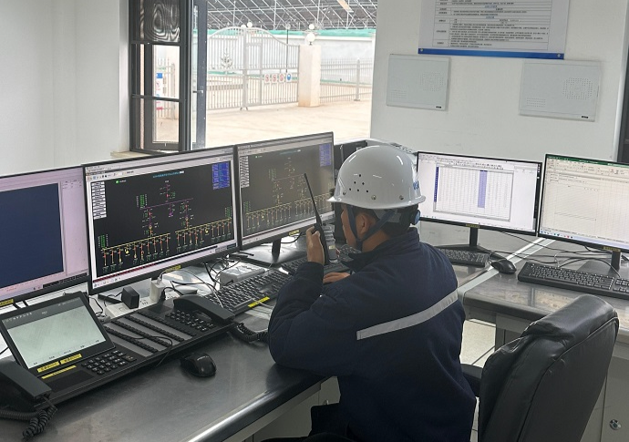 吉塘光儲電站室外溫度零下2度,風(fēng)力10米/秒。“我們24小時值班,確保第一時間處理設(shè)備出現(xiàn)的故障。”正在值班的運維員涂曉向調(diào)度答復(fù)到。中控室內(nèi)的電腦實時更新發(fā)電量、電壓電流頻率等信息,監(jiān)控場內(nèi)逆變器、站內(nèi)主要設(shè)備運行情況。整個春節(jié)期間,專業(yè)技術(shù)人員會堅守崗位,保障全站安全穩(wěn)定正常運行。
