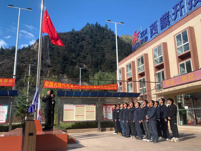 10月1日,果多水電公司全體干部職工在辦公樓前整齊列隊(duì)。隨著莊嚴(yán)肅穆的音樂聲響起,升旗儀式正式開始,鮮艷的五星紅旗冉冉升起,迎風(fēng)飄揚(yáng),全體干部職工面向國(guó)旗行注目禮,共同表達(dá)對(duì)祖國(guó)的忠誠(chéng)和熱愛。