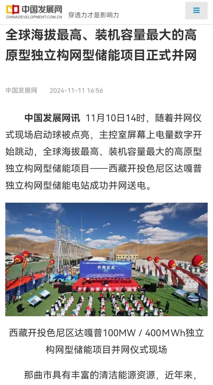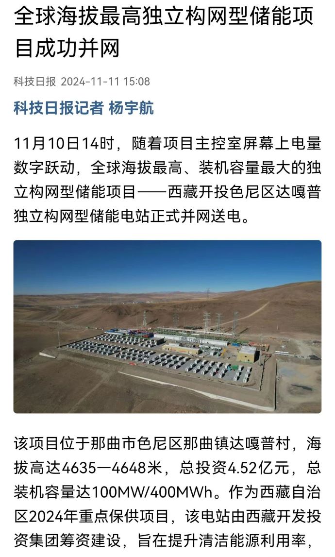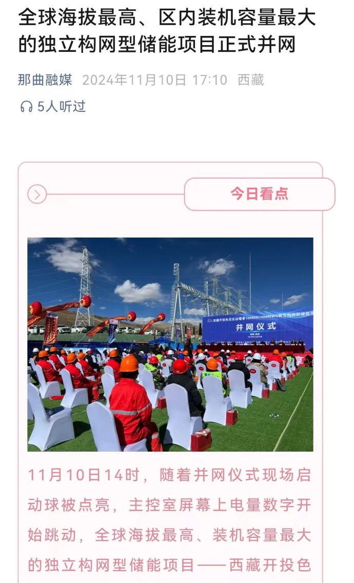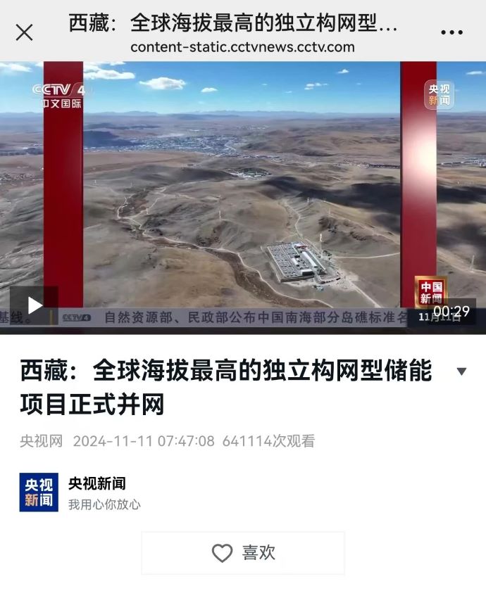 實(shí)力刷屏!各級(jí)媒體聚焦報(bào)道西藏開投色尼區(qū)獨(dú)立構(gòu)網(wǎng)型儲(chǔ)能項(xiàng)目