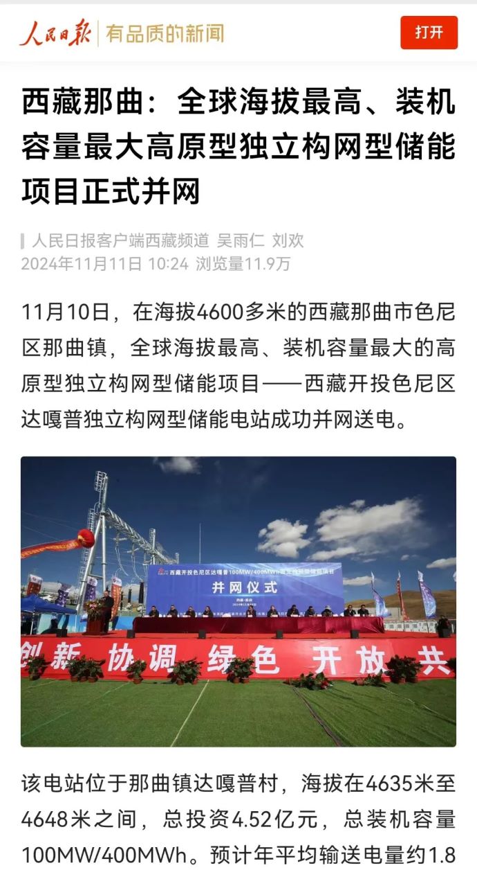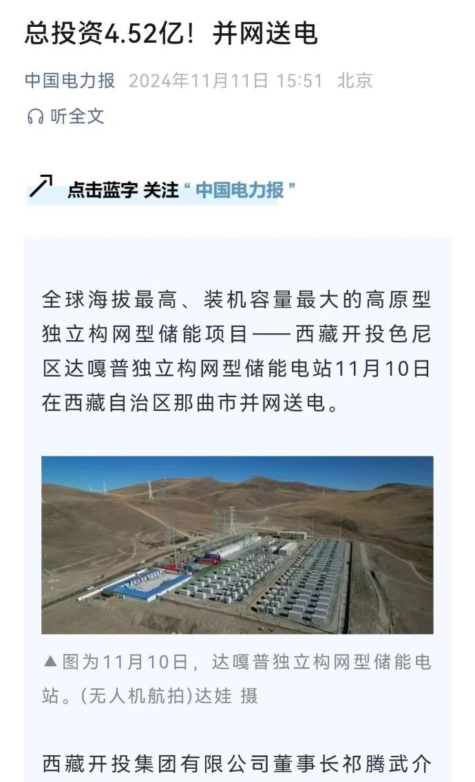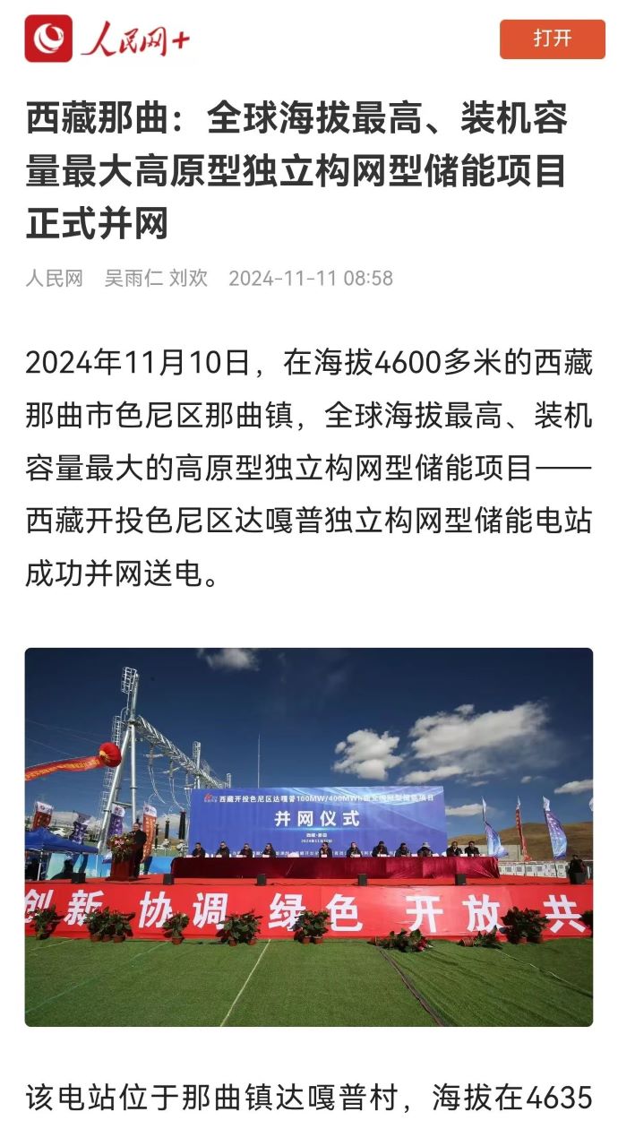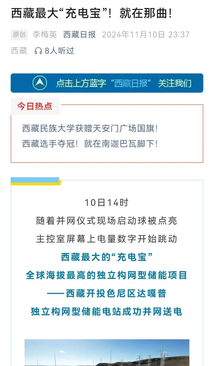 實(shí)力刷屏!各級(jí)媒體聚焦報(bào)道西藏開投色尼區(qū)獨(dú)立構(gòu)網(wǎng)型儲(chǔ)能項(xiàng)目