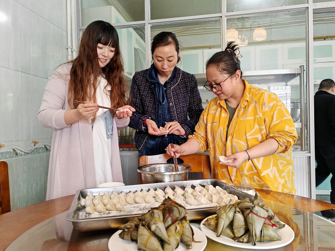 分公司的藏族、土家族、回族、漢族等干部職工歡聚一堂,一起動(dòng)手包粽子、包餃子,品味端午,討論家鄉(xiāng)過端午的習(xí)俗及特點(diǎn),歡聲笑語,氣氛活躍。