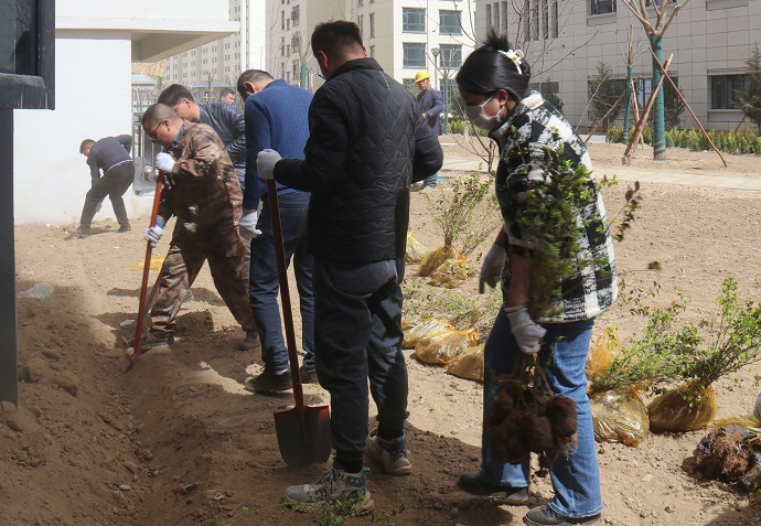 活動現(xiàn)場,在聽取工作人員講解植樹注意事項后,大家三五一組、分工協(xié)作,有的揮鍬鏟土、填苗澆水,有的培土圍堰、澆水灌溉,還有的清掃垃圾、搬運雜物?,F(xiàn)場氣氛活躍、組織有序,呈現(xiàn)出一片熱火朝天的忙碌景象。每道工序一絲不茍、認(rèn)真細(xì)致,展現(xiàn)了團結(jié)協(xié)作、奮發(fā)向上的精神風(fēng)貌。