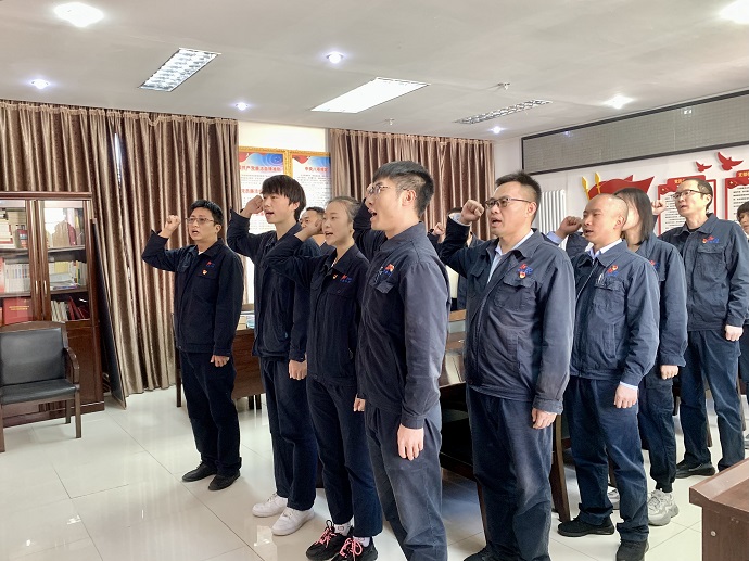 在領(lǐng)誓人宋亞東的帶領(lǐng)下,全體黨員面對鮮紅的黨旗莊嚴(yán)宣誓,重溫入黨誓詞,鏗鏘有力的聲音傳達(dá)出了身為共產(chǎn)黨員的自豪感和使命感,充分展現(xiàn)了全體黨員干部為黨和人民的事業(yè)奮斗終身的不變理想和追求。