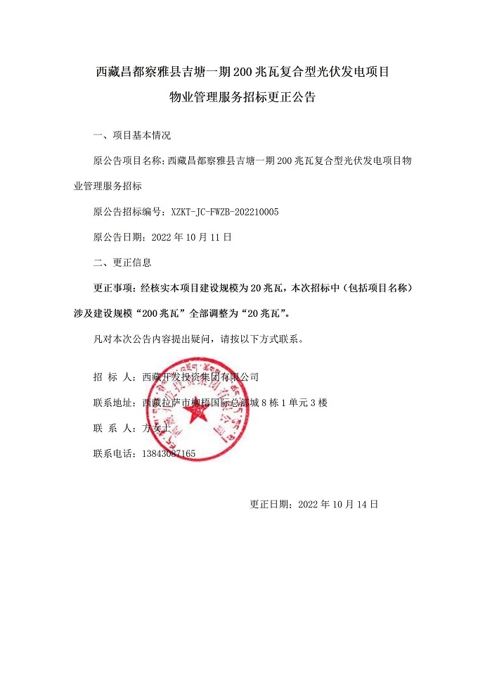 物業(yè)管理服務招標更正公告