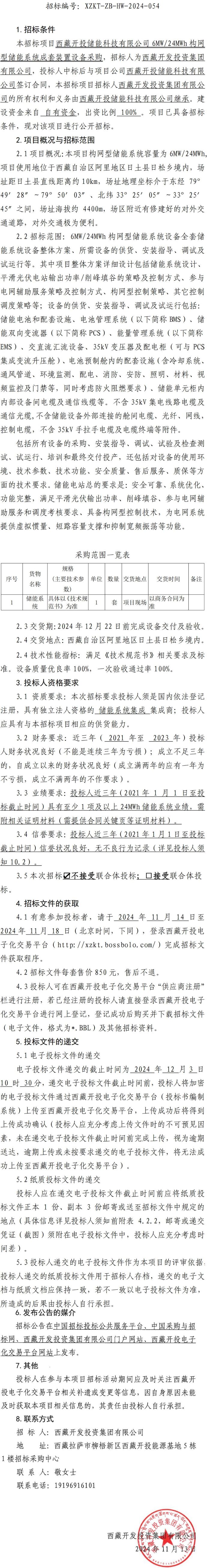 儲能科技6MW/24MWh構(gòu)網(wǎng)型儲能系統(tǒng)成套裝置設(shè)備采購招標公告