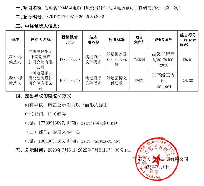 中標(biāo)候選人公示(達亞囊測風(fēng))更正