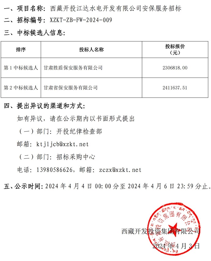 中標(biāo)候選人公示